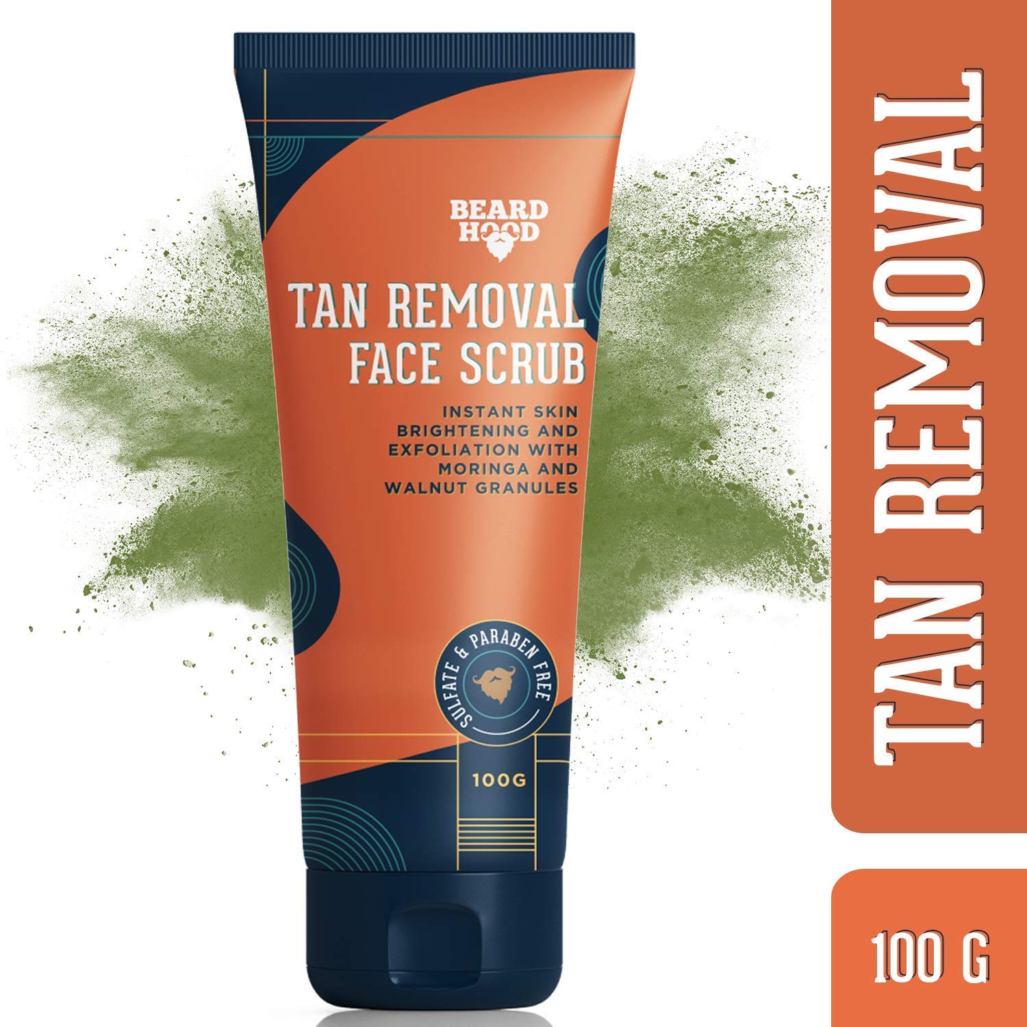 Beardhood Tan Removal Face Scrub with Moringa, Walnut Granules & Almond Oil, SLS & Paraben Free, 100g