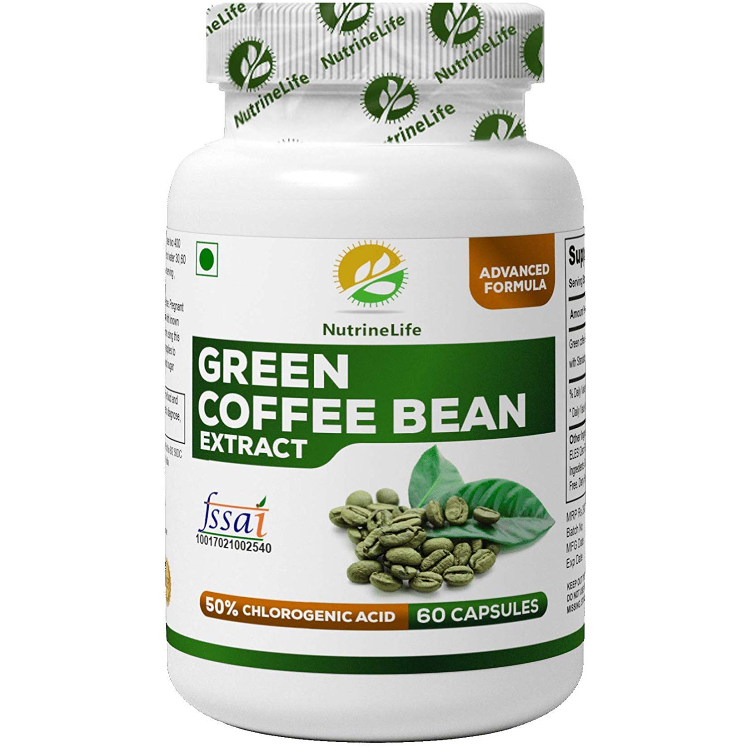 Natural formulation: Our green coffee bean extract is made with only the best, premium, and natural ingredients, no harmful preservatives and no unwanted side effects. Metabolism booster: The intake of these green coffee bean capsules for weight lose helps to lose fat, increase metabolism and boost energy naturally. Gluten-free and vegan. Unlike stimulating weight-management products, nutrinelife green coffee bean extract is decaffeinated, each vegetarian capsule is equivalent to one cup of decaffeinated coffee.